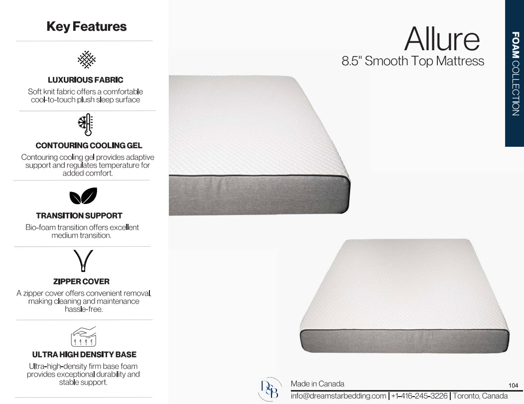 Allure offers a perfect balance of plush comfort and advanced support for a truly restful night’s sleep.