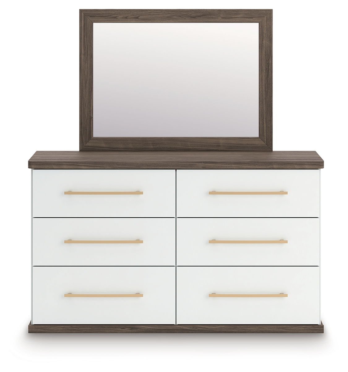 Looking to make a subtly striking statement in your bedroom? We’ve got you covered. This dresser’s sophisticated two-tone treatment marries a warm finish over replicated walnut grain with a matte white finish. Rounded corners and a thick top radiate an air of modern panache, while sleek handles in a champagne finish add a sparkling touch to the spacious drawers. It’s a master class in contemporary yet comfortable character.