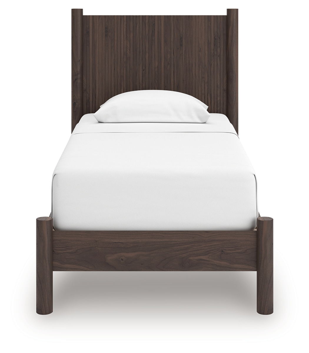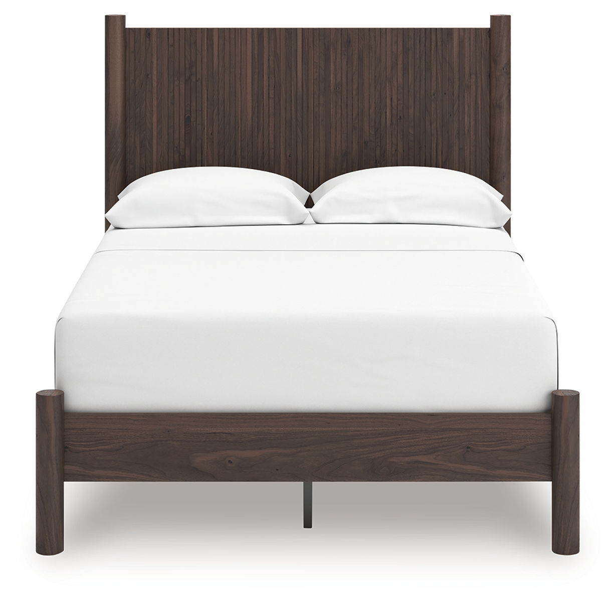 Crafted with both form and function in mind, this panel platform bed brings a dash of retro-cool character to your modern boho aesthetic. Reeded accents add an on-trend touch to its classic silhouette. Warmly welcoming with a rich finish, this bed pairs well with muted hues, earth tones and other neutrals alike. What a refined take on easygoing style.