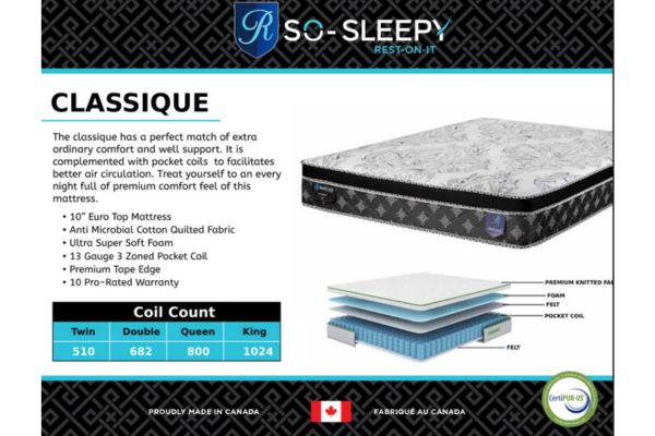 The Restonit Classique (or Classique PT) is an affordable, Canadian-made mattress designed for balanced comfort and support, often sold as a “bed-in-a-box”. It features pocket coils for support and better air circulation, paired with a pillow top for comfort. It is known for being a budget-friendly option.
