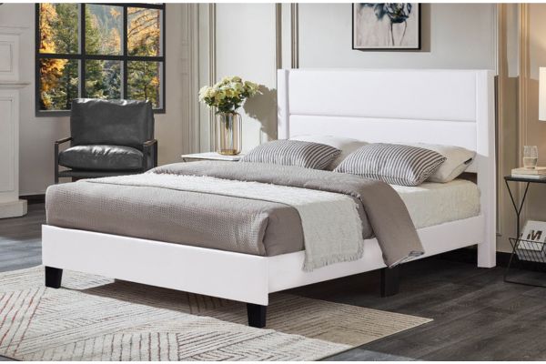 White PU Leather Look Platform Bed